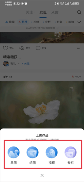 2、接着选择你要上传单图、组图、视频还是专栏