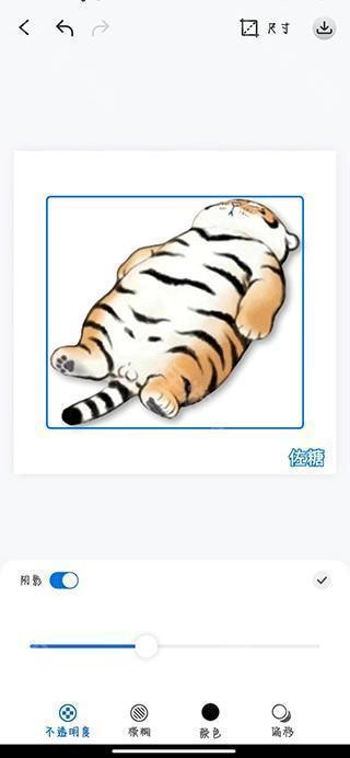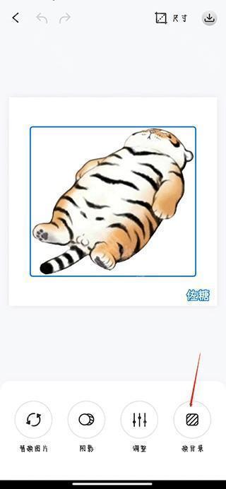3、图片抠图成功后,用户可以根据自己的需求,对图片进行换背景,裁剪尺寸,加阴影等操作,改动完成后,点击、保存即可保存在手机内。