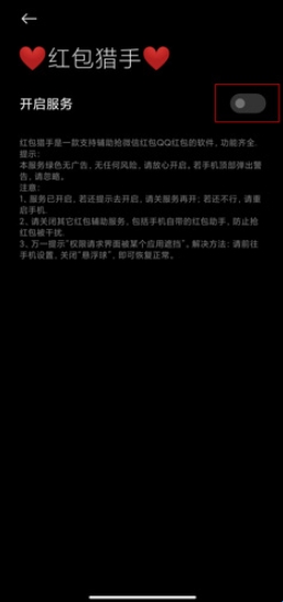 1、检查『红包猎手』的自动抢红包是否处于开启状态。
