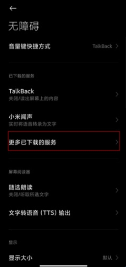 在无障碍页面中点击更多已下载的服务按钮;