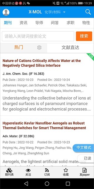 Xmol,一款可以查阅大量学术期刊的阅读平台,包括化学、生物、医学等等领域,方便学生和科研人士进行资料搜索。收录海量的学术期刊论文,涵盖行业资讯、海外课题组信息以及科研导航等功能。支持中英文切换,可以通过关键词或作者快速检索到所需的文献。还提供文献直达功能,帮助快速定位原文,极大地提高科研效率。文献订阅和收藏功能,方便随时回顾和整理自己的研究资料。
