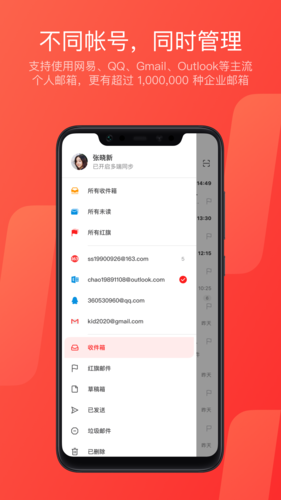 网易126邮箱手机版是一款支持添加其他品牌邮箱app,支持网易136邮箱、126邮箱、QQ邮箱、谷歌邮箱Gmail、新浪邮箱,多种邮箱账户集中管理,支持邮件收发、附件,可跨端、平台接收邮件,支持各种型号手机、平板设备,可以横屏操作,有需要的朋友不要错过了。