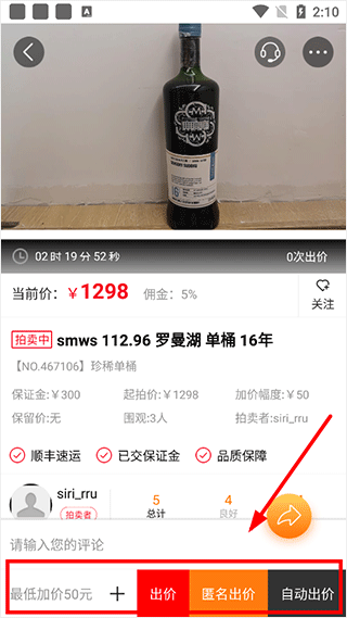 (2)选择要购买的酒,进入拍卖页面;