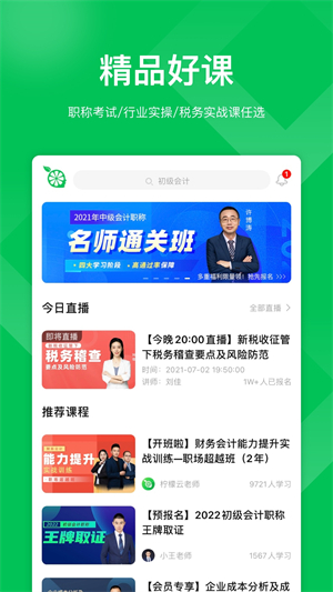 柠檬云课堂,会计学习的优质之选!海量课程涵盖会计实操、考证等多领域,满足不同阶段学习需求。课程由资深讲师精心打造,内容实用且贴合实际工作场景。支持多设备随时随地学习,打破时间与空间限制。还有社区交流互动,能与同行切磋学习心得。此外,平台操作简单,学习进度清晰可见。无论你是新手小白还是进阶提升,柠檬云课堂都助你高效掌握会计知识与技能。