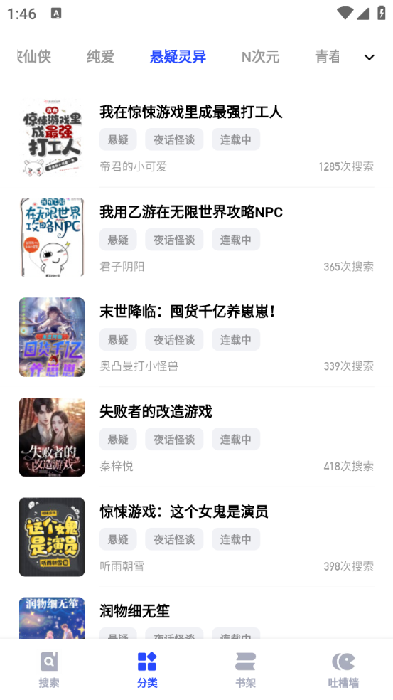 2.分类专区:这里有最全面的网络小说分类,可以根据自己的喜好来选择阅读。