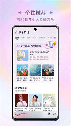 1、除了丰富的曲库和个性化推荐,提供了一些独特的特色功能,如云K歌和视频彩铃。