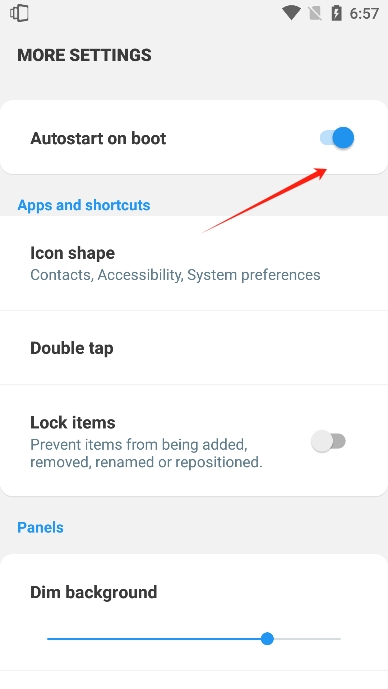 5、这里有一些快捷方式可以设置,勾选右侧的滑动按钮即可在开机的时候自动启动