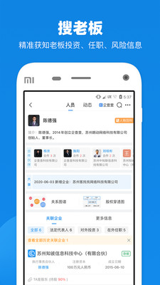 3.该软件可以查询公司背后的老板,以便实时了解老板的投资、任职等情况,进而有效配合。