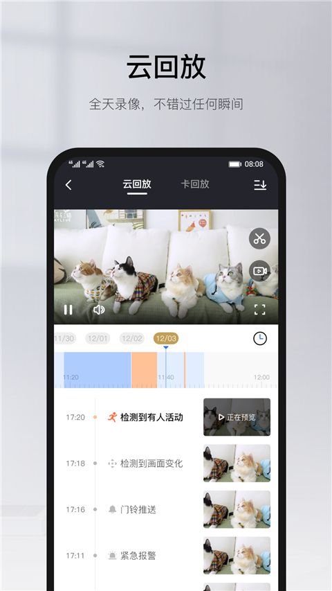 【历史录像随时查看】支持TF卡或云端录像存储,随时随地记录关键镜头,收藏精彩瞬间