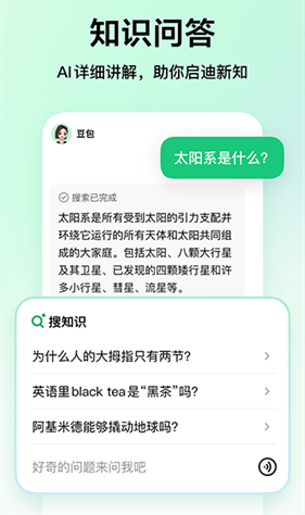 豆包爱学,是一款超实用的学习利器!它拥有海量优质学习资源,覆盖各学科各年龄段。智能学习规划功能,能根据学生的学习情况量身定制专属学习路径,提升学习效率。互动式学习体验,让学生告别枯燥,激发学习兴趣。还有专业老师在线答疑,随时解决学习难题。无论预习、复习还是拓展知识,豆包爱学都能陪伴学生一路成长,是助力学业进步的不二之选。