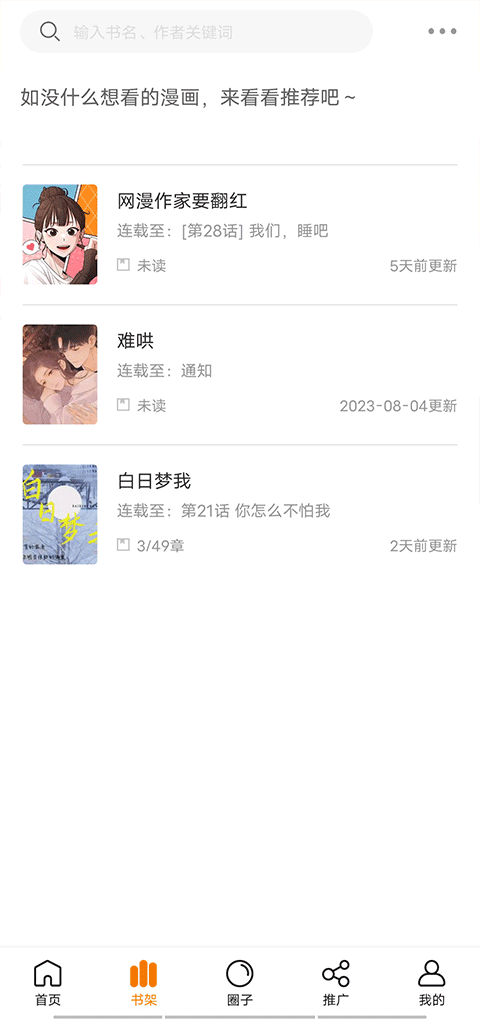 3、进入书架功能后点击同步数据即可,也可以在这里查看下载的漫画。
