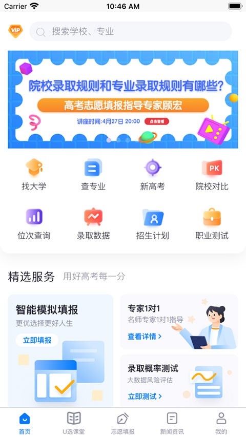 高考u选app是一款为高考生提供志愿填报服务的辅助软件,可以看到不同院校的招生录取情况,历年录取等等信息,精准预测与匹配,帮助你找到适合自己的学校,不浪费每一分,功能不仅丰富并且还很人性化,很是实用。