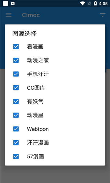 cimoc漫画app是一款完全免费的漫画阅读软件,提供了多种图源可以选择,cc图库,动漫屋,有妖气,看漫画等等,为用户带来成千上万的漫画资源,类型丰富,只需要搜索漫画就能在线看漫画,内容全面且完整,非常的方便。