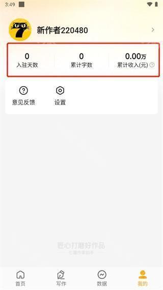5、我的页面可以查看入驻天数、累计字数、累计收入等。