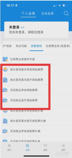 2、在菜单栏中找到【基本养老保险缴费】。