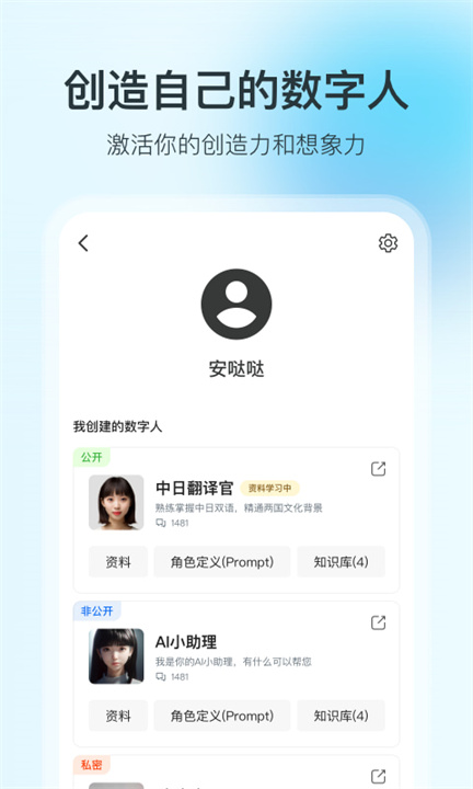 3. 数字人创建完成后,可以在【我的】界面中找到刚刚创建的数字人角色。