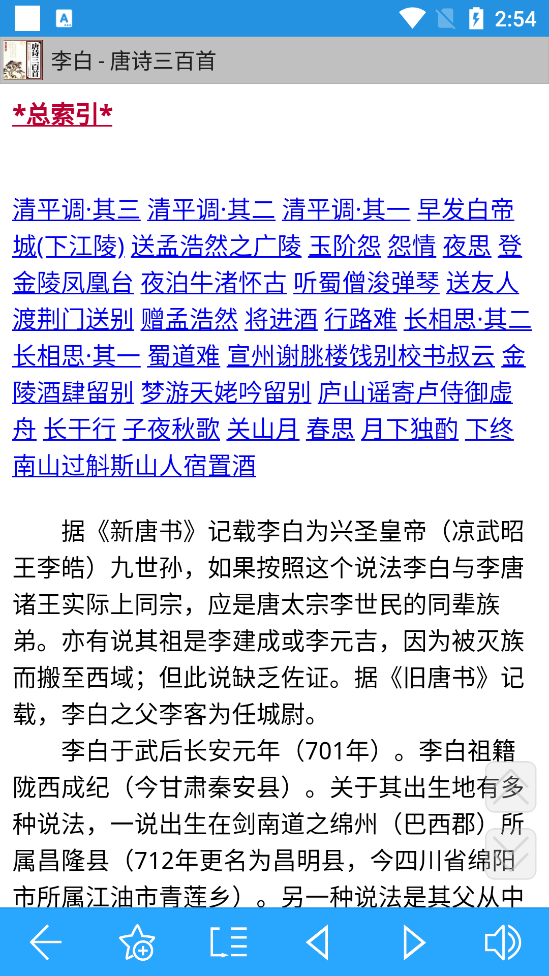 简繁体转化:默认为不转化,当选择转简体或转繁体时,搜索结果以及正文显示的内容都将转化为指定的方式,搜索时也将自动搜索简体与繁体的内容,但是有极个别时候因为简繁转化时存在不是一对一的情况,会出现超链接失效的情况。屏幕方向:默认为自动,可以设置为强制竖屏或横屏。