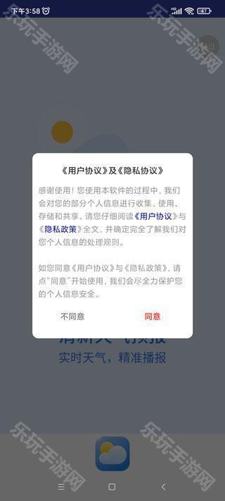1、在本站下载安装清新天气预报,运行软件,接受协议;