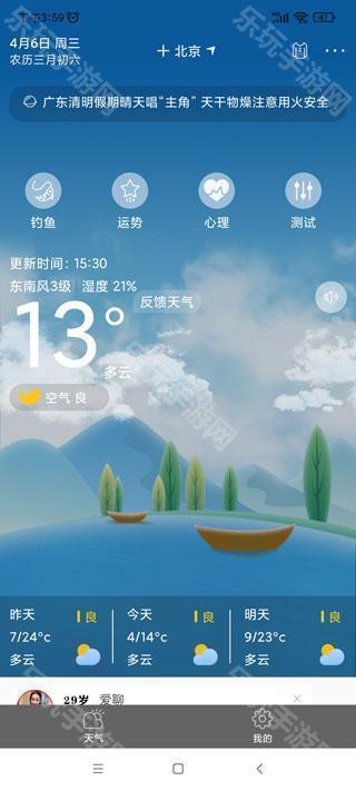 4、还可以查看钓鱼天气,帮助用户分析是否可以出去钓鱼;