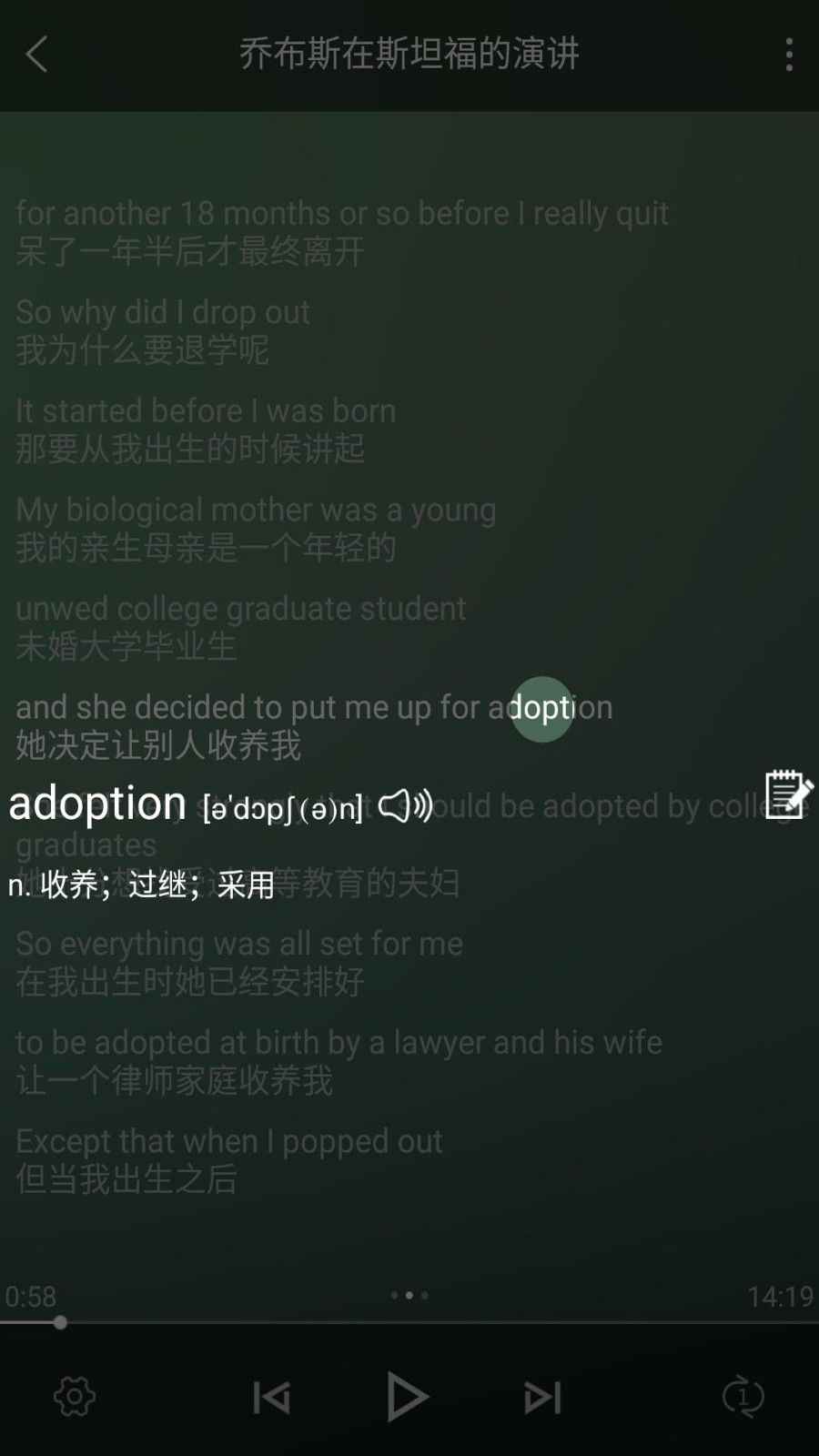 1、支持对照中英文字幕查看,上下滑动浏览英文原文,点击单词就能即时翻译。
