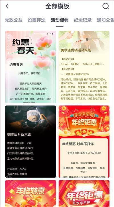 2、在【活动模板】页面内,查找适合自己使用的模板