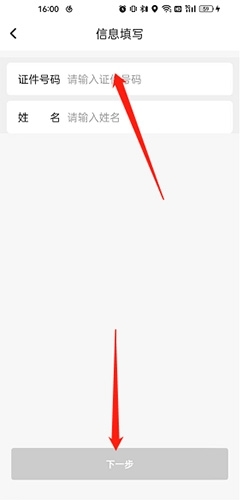 2、输入身份证信息,点击“下一步”选项,按照提示进行认证即可。