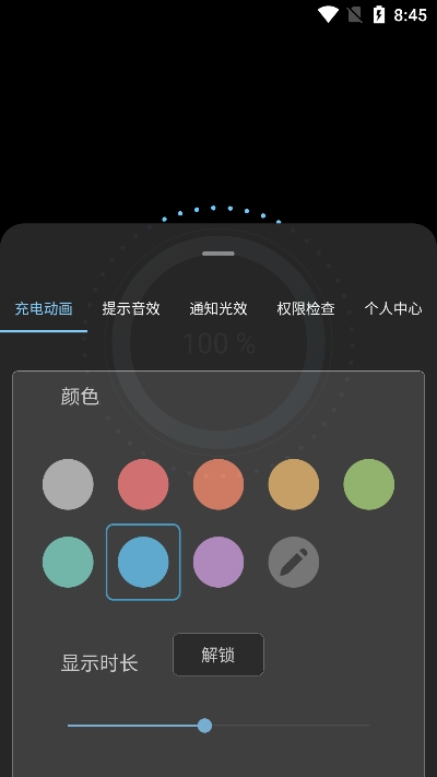 2、权限开启完成后,请点击“充电动画”选项,在这里,您可以挑选自己喜欢的充电动画效果,并且在下方还可以对这些动画效果进行细致的调整。