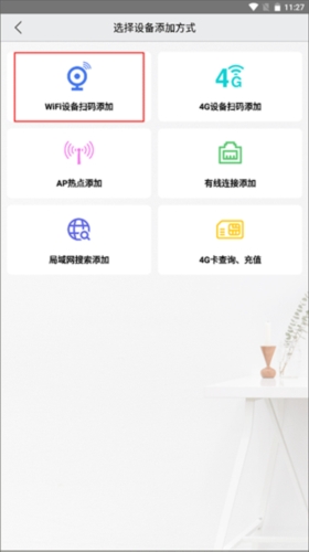 3、这里有很多种添加设备的方式,如WiFi设备扫码添加、4G设备扫码添加、AP热点添加、有线连接添加等