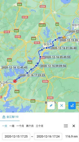 用户可以选择时间段查看船舶航行轨迹,重现船舶航行过程。