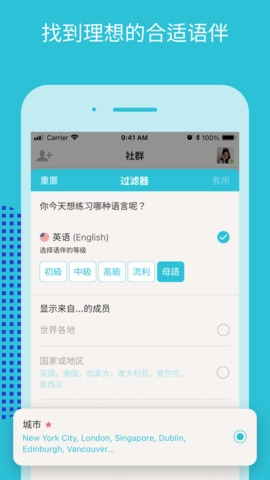 2.根据您的兴趣和语言能力找到理想的语言交换伙伴。