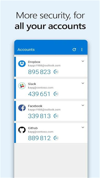 Microsoft Authenticator也叫微软身份验证器,是由微软官方推出的身份安全验证类软件。支持多种系统平台,支持多种身份验证方式,通过人脸、PIN码、指纹等多种方式进行无密码登录,一次性密码和推送通知验证,更好确保账户的安全性。通过软件将账户备份到云端,切换手机设备也能够随意使用。支持自动保存密码填写,大大简化整个操作流程,提升用户的使用感受。
