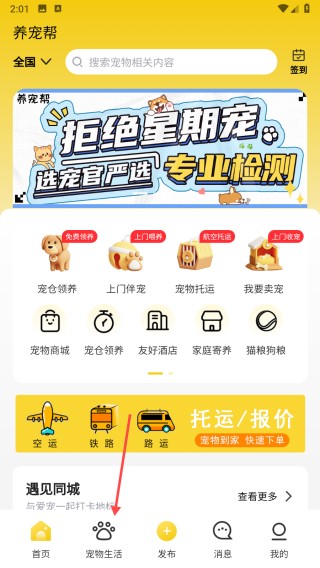 1、打开软件,进入首页之后,点击下方的【宠物生活】