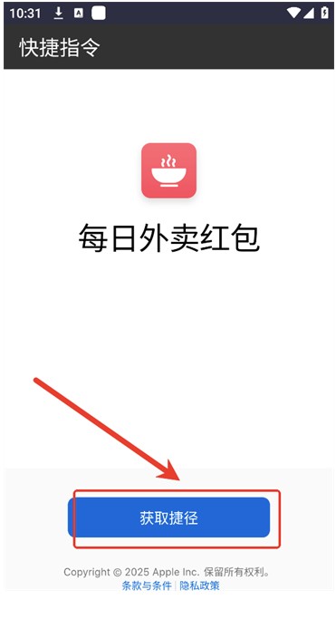 3、点击获取捷径就会跳转了