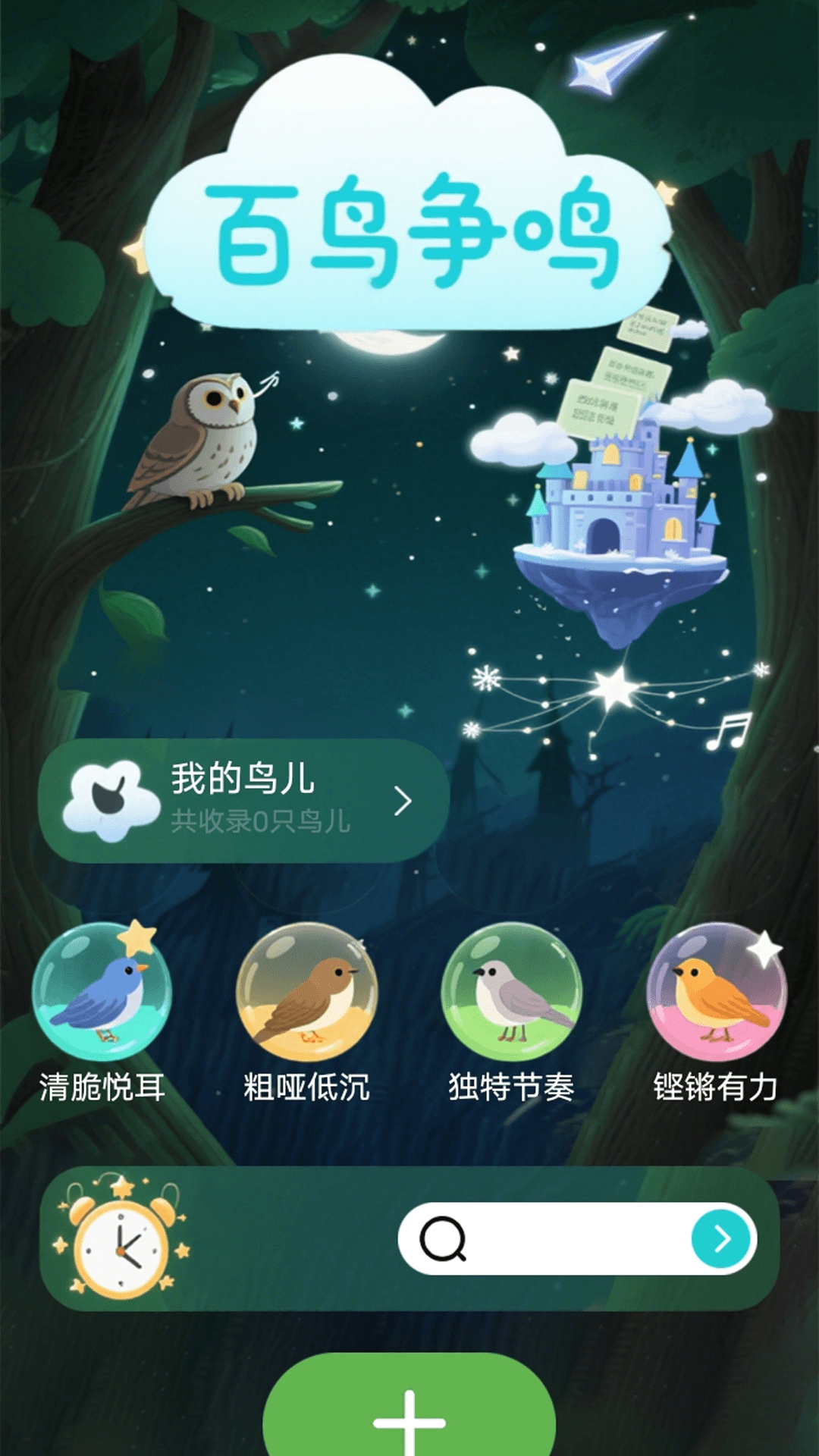 2、百鸟争鸣界面,有各种悦耳的鸟鸣声提供,还可以去收藏自己喜欢的鸟叫声。