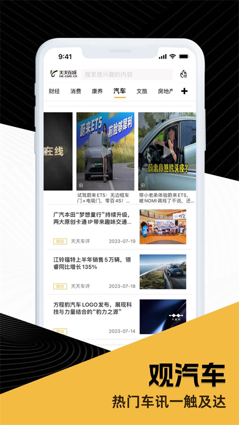 1、用户点击汽车标签,可浏览蔚来等车企试驾、销售数据等新闻,获取汽车行业动态与产品资讯。