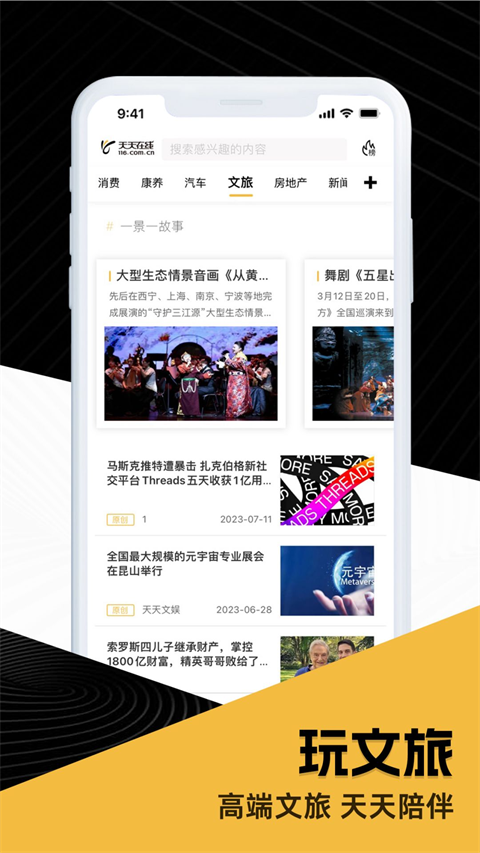 3、点击文旅标签,可了解生态音画展演、舞剧巡演等文旅资讯,探索文化旅游活动与行业信息。