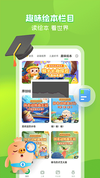 2、首页有有着系列课、动画视界、儿童听书等多个板块服务提供