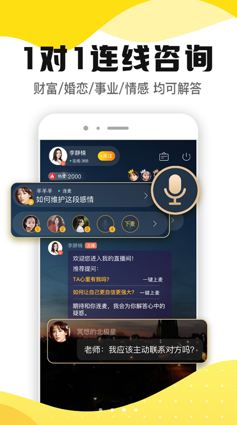 1对1即时咨询情感导师,高质量情感指导,助您走出爱情困境,教您如何更好的经营恋爱关系,读懂ta的心!