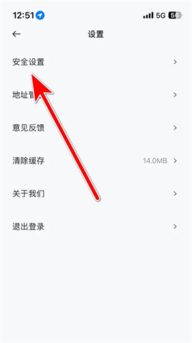 2、在设置页面,选择【安全设置】选项。