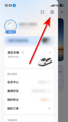 1、打开云度汽车app的菜单页面,点击【设置】进入。
