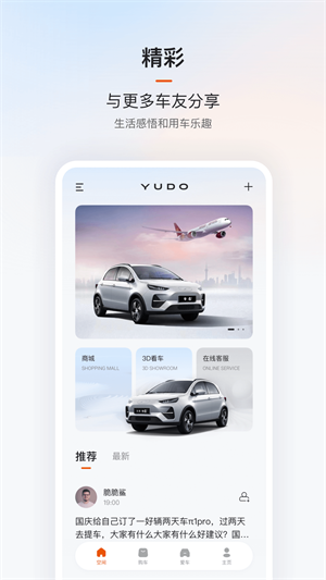 2、社区交流:官方带您全方位了解云度汽车各车型及产品科技,车友共同交流,线上线下组织活动,让您购车后的生活更加丰富多彩。同时还有更多车主及工程师在线解答用车问题。