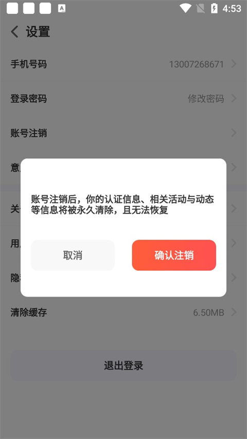 注意:账号注销之后你的认证信息、相关活动和动态等信息也会被永久删除,无法恢复。