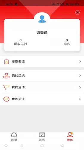 1、进入中华志愿者App“我的”板块中,选择右上角的设置图标。
