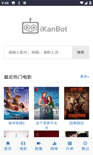 ikanbot爱看机器人是一款专为观众打造的免费观影追剧软件,汇聚丰富多样影视资源,观众可免费观看各类有趣影视剧,其具备快速的影片缓冲速度,搭配多种播放源,观众能通过切换更快享受精彩影片内容,追剧时有快速的进度加载,无需等待即可开始观影,即便处于片荒时期,也能在首页看到推荐的精彩影片