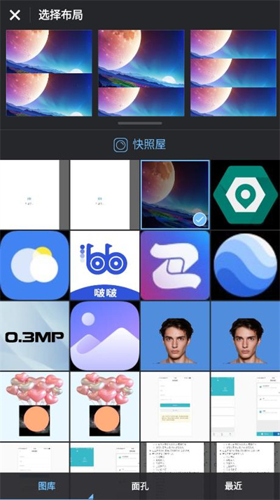 支持多种拼图布局,让用户根据照片的大小进行自由调整;