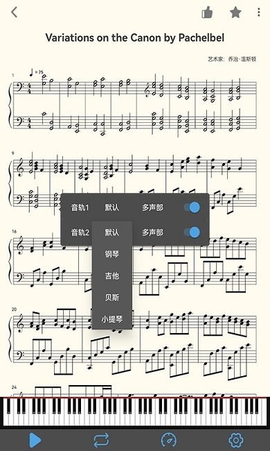 • 音轨控制,可以只加载指定谱表,静音音轨,设置音轨音色,调节谱表声部
