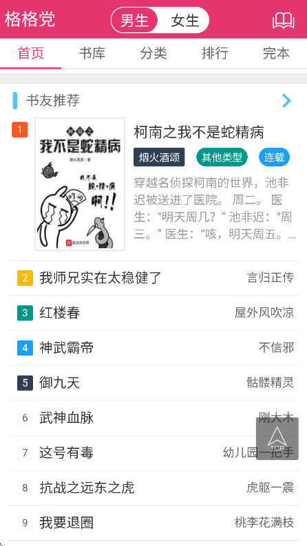3.从网络原创小说到出版畅销图书,覆盖玄幻奇幻、现代都市、历史军事、武侠仙侠、女生都市言情、穿越重生、灵异惊悚等,倾心为用户提供海量精品小说资源!