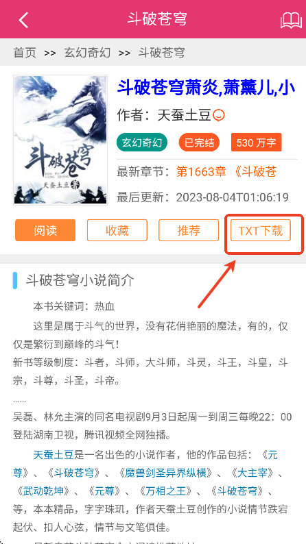 用户们可以点击“txt下载”,将小说下载到本地,方便之后离线阅读