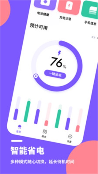 1、智能省电、睡眠模式、自定义模式等,调节屏幕亮度、锁屏时间及铃声、触控等开关,减少不必要的电量消耗,延长使用时间。